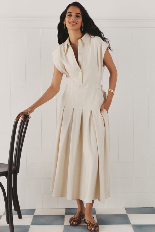 Ecru Quince Midi Shirt Dress