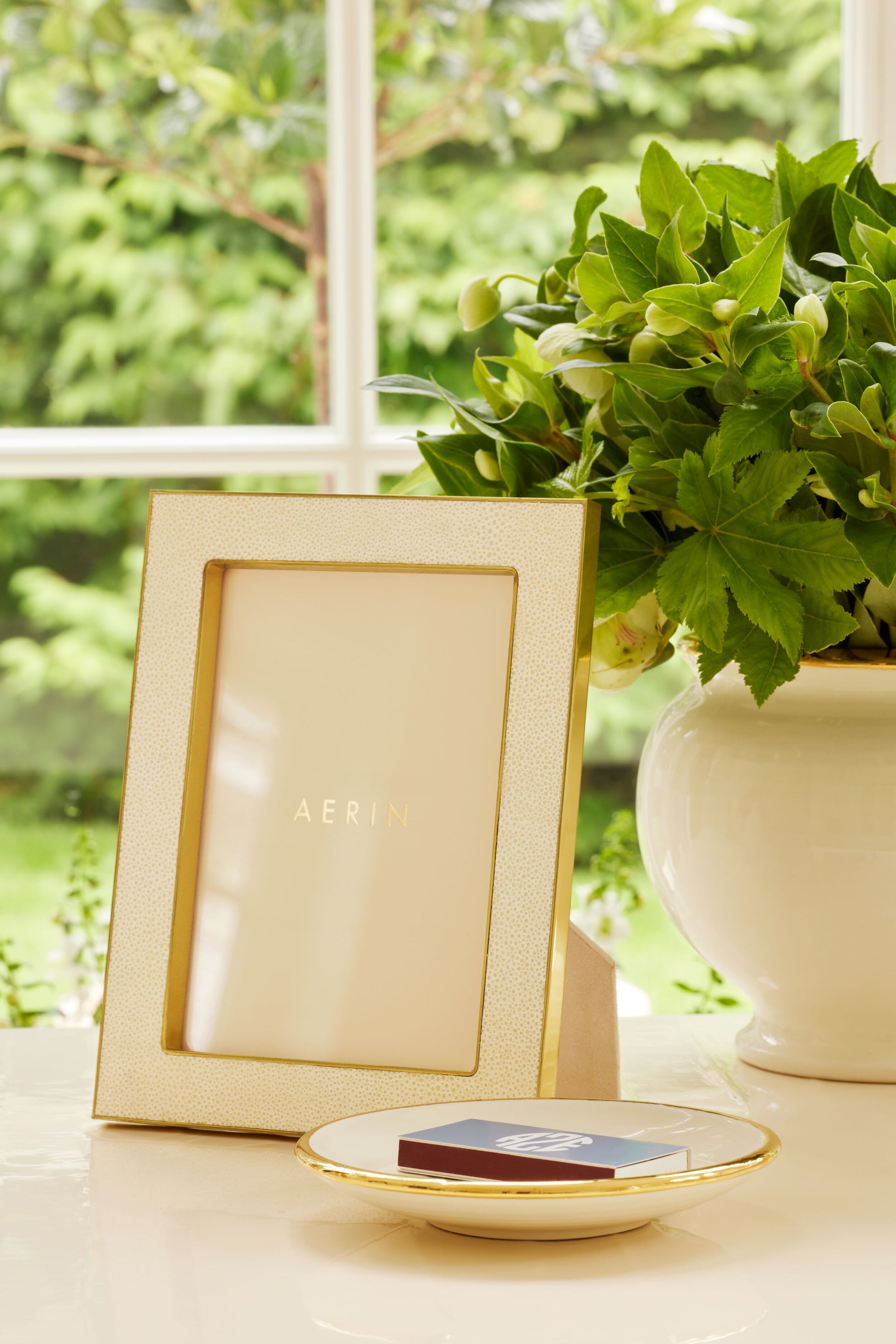 This modern yet classic frame juxtaposes the luxury and texture of embossed shagreen trimmed in polished brass. The versatile color elegantly displays a favorite family photo or a small piece of art.