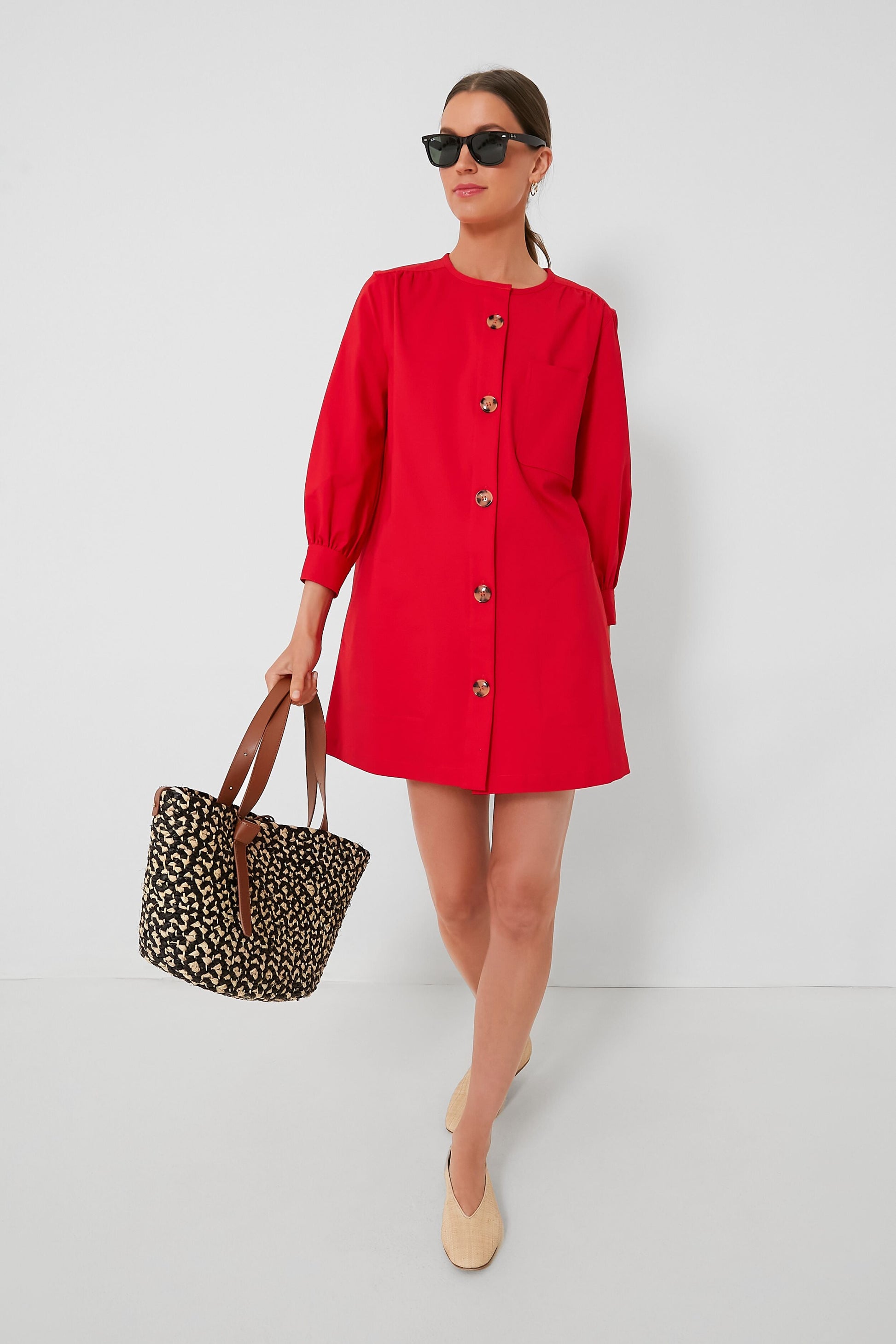 Featuring a full front placket with tortoise shell buttons, long puff sleeves, and a boxy silhouette, the Red Blake Dress is the perfect mod-inspired style. With pockets along the side seams and left chest for extra fun and function, this edgy mini is casual cool while still exuding chic sophistication. Perfect for the season, pair this desk to drinks number with loafers and add a leather jacket for an on-trend nighttime look.