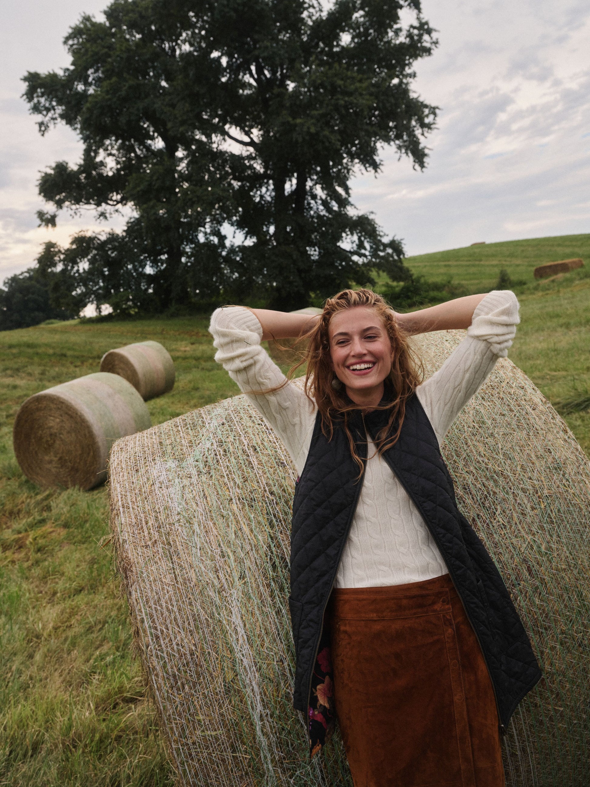 There’s no reason to choose sides with the reversible Paisley liner. You get the best of both worlds with a neutral black on one side and Tuckernuck’s signature Baroque Floral on the other. Wear this slightly longer, oversized layer over a turtleneck, a denim shirt, and leggings for a look that nods to style icons like Bunny Mellon, Ina Garten, and Martha Stewart, or go with something a little more modern with riding leggings and a classic white button down à la CBK.
