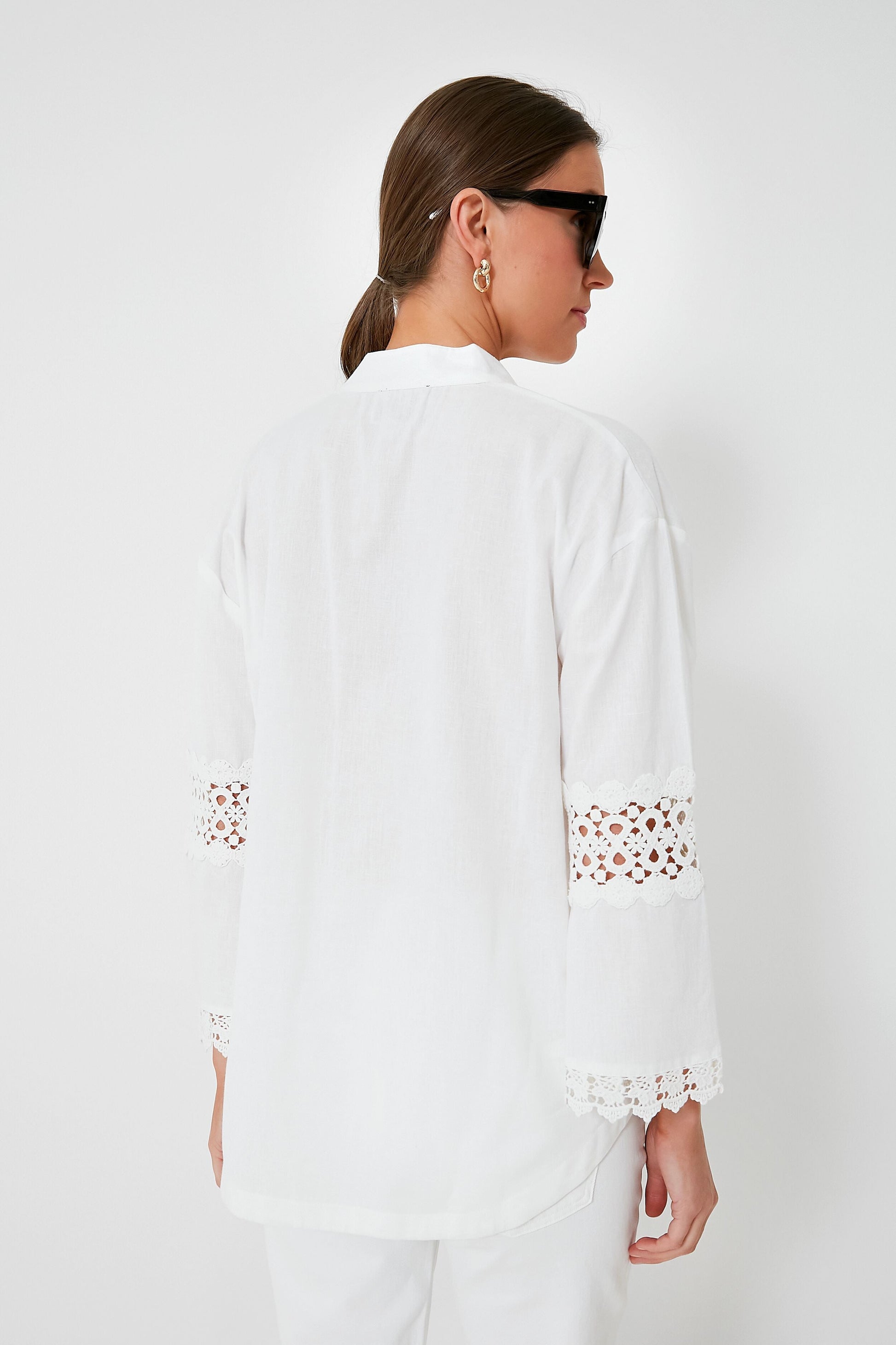 Refined yet laidback, the Blanc Piper Lace Top is checking all the boxes when it comes to elevated beach style. Full of small yet notable details like the scalloped bib, intricate eyelet detailing on the elbows, and the lace trim on the cuffs, it's hard to decide what we like most. Perfect for sipping spritzes beachside, we are pairing this blouse with white denim and raffia accessories for a clean and crisp look this season.