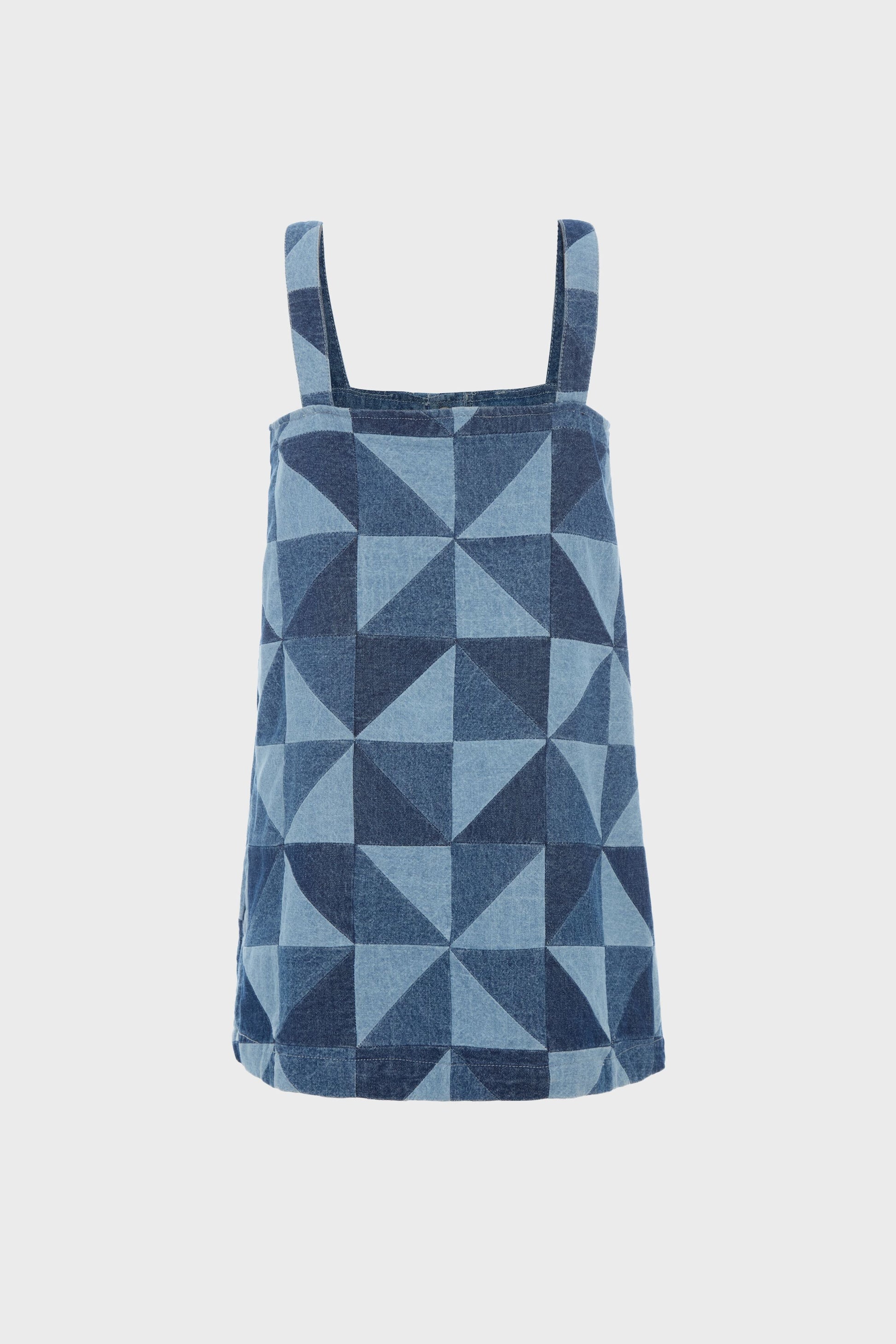 The Deniz denim patchwork dress features multicolored denim patchwork for a fun and playful look. Designed with front snap buttons for effortless dressing and patch packets for tiny treasures, it's perfect for everyday adventures with a touch of charm.