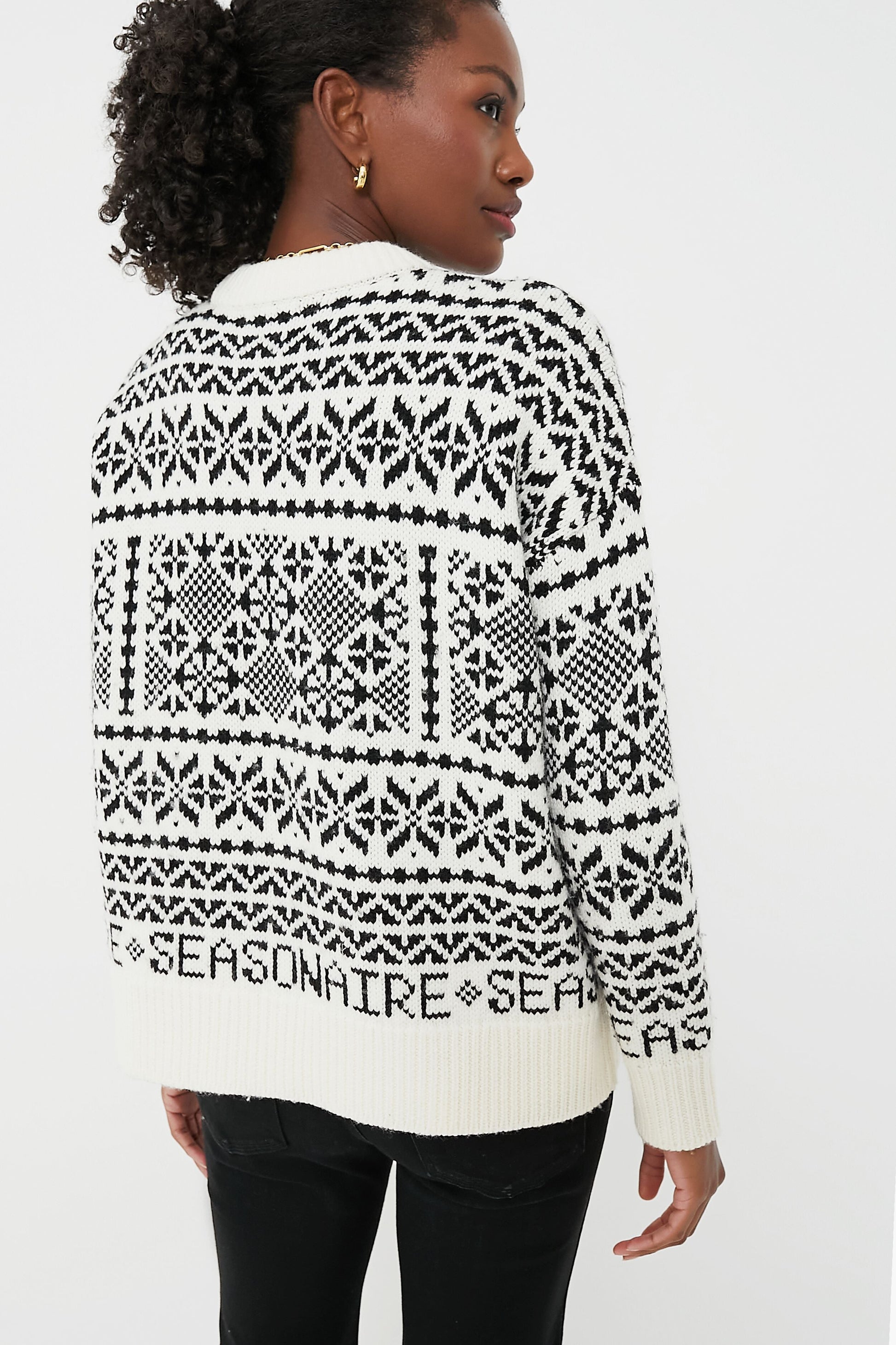 Sweater weather is in full swing and there’s no better way to celebrate than with the Charcoal and Cream Fair Isle Sandwick Sweater. This chunky knit is made for the season, with 100% wool fabrication you’ll be oh so cozy whether you’re on an urban city stroll or cozying up by the fire. Featuring a classic fair isle pattern and fun “SEASONAIRE” print on the bottom, this comfy crew is fit for a ski town- just add boots and oversized sunnies for an understated chic look.