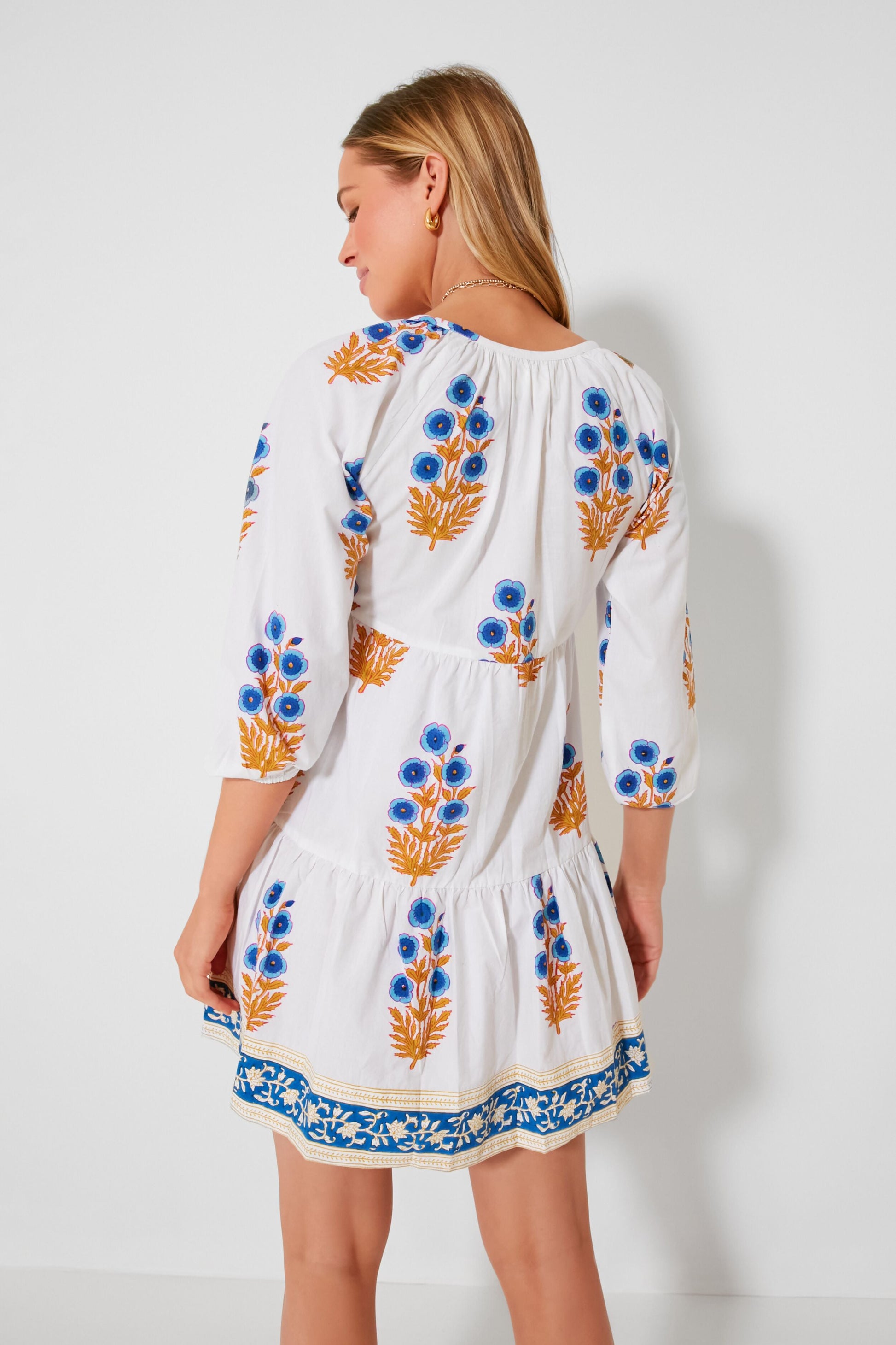 Perfect for throwing over a swimsuit after a day by the sea or paired with strappy sandals and gold jewelry for boho-chic look, we love the relaxed aesthetic of the Cornflower Poppy Print Joci Dress. This flirty frock features blouson sleeves and a tiered body that has an easy, voluminous shape perfect for keeping you cool on hot summer days. Adorned with deep blue florals hand block-printed on a bright white backdrop, there's no doubt this will be an outfit winner this season.
