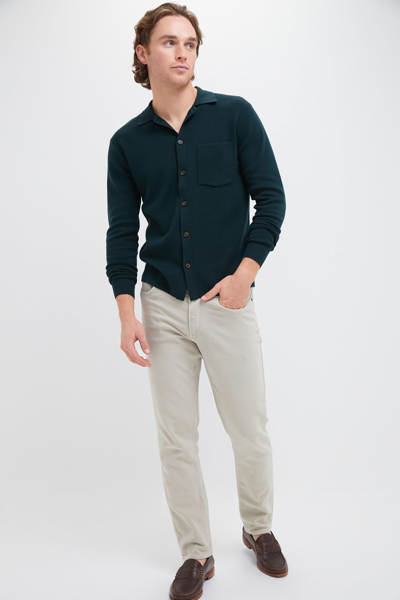 With its spread point collar and patch pocket, this button-down sweater marries the structure of a shirt with the comfort of a sweater. Made from a medium-weight knit, it’s soft, breathable, and ideal for layering in both the shoulder seasons and colder winter months. Wear it to the office in place of a quarter-zip or crewneck, or pop it on over a tee for a polished yet relaxed weekend look.