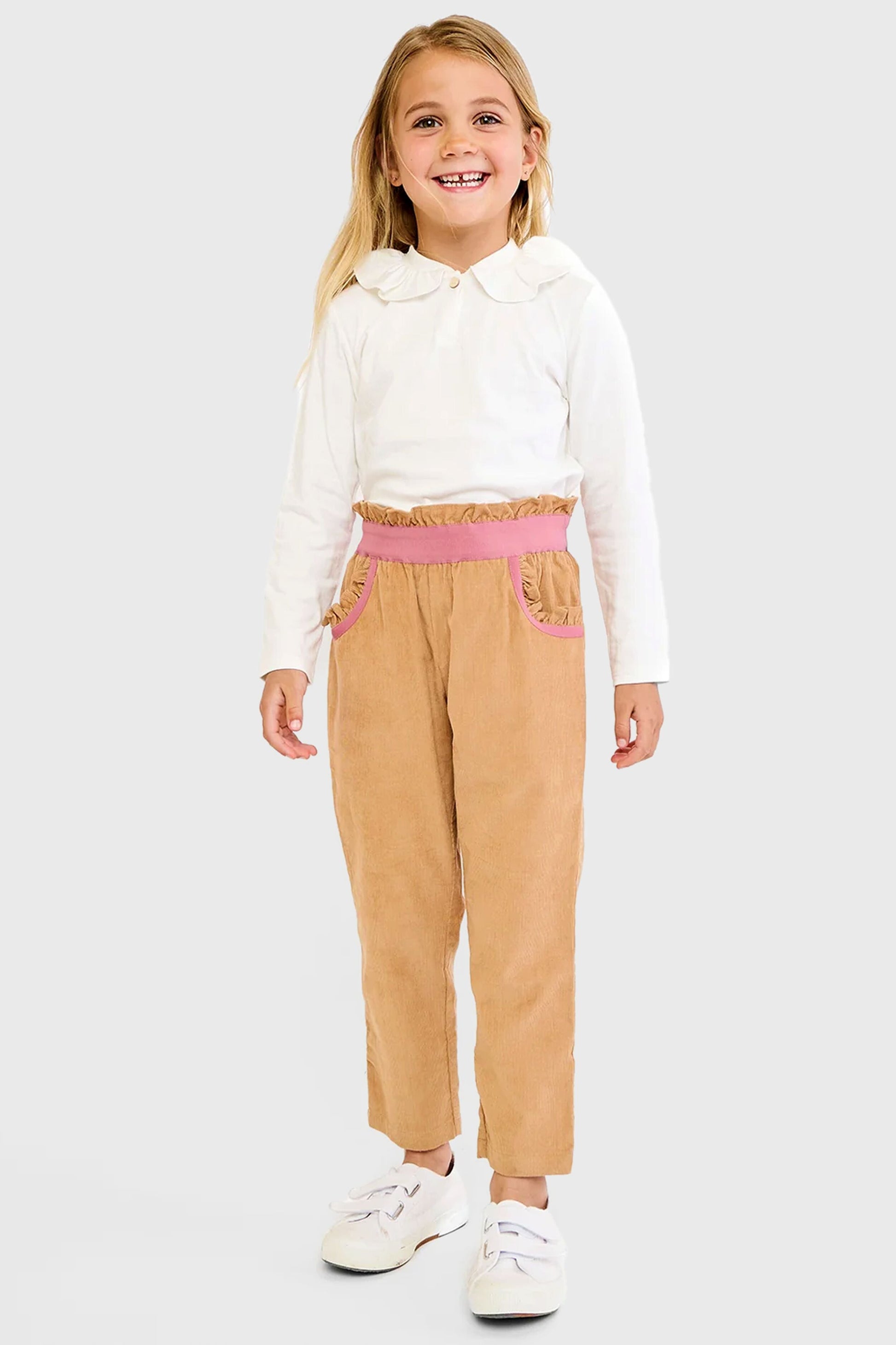 Designed with a classic, everyday silhouette and complete with a cuffable hem, this pant is made to last as your little one grows. The elastic grosgrain waist is complemented with delicate ruffled ruching and paired with contrasting pockets for a playful touch. Made from the softest corduroy, it’s as comfortable as it is cute.