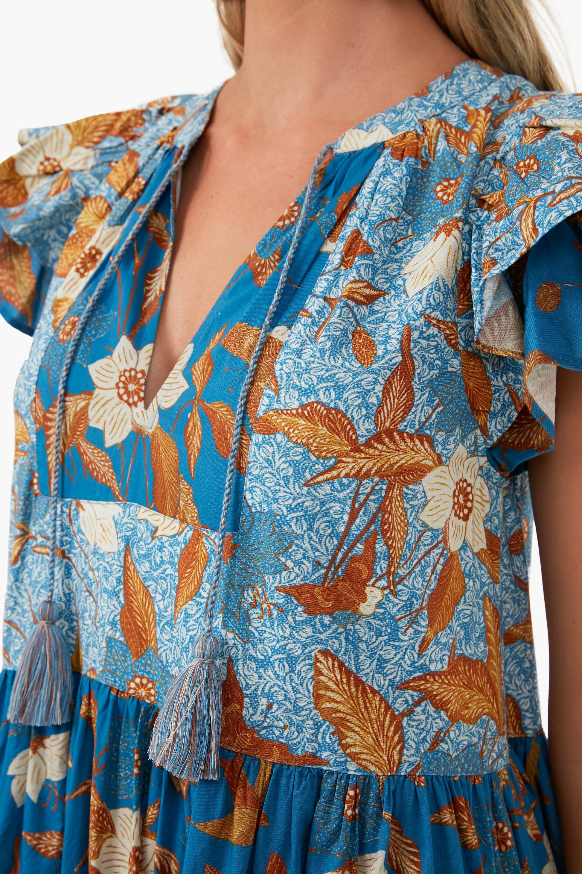 The Lapis Gail Dress is a signature Ulla Johnson A-line dress, made from medium-weight cotton patchwork fabric printed with blossoming hibiscus flowers. This below-the-knee style features a tiered bodice, double flutter sleeves, and a split neckline with tassels on each side. Pair with sandals and gold accessories for farmers’ market runs to dinner with the gals.