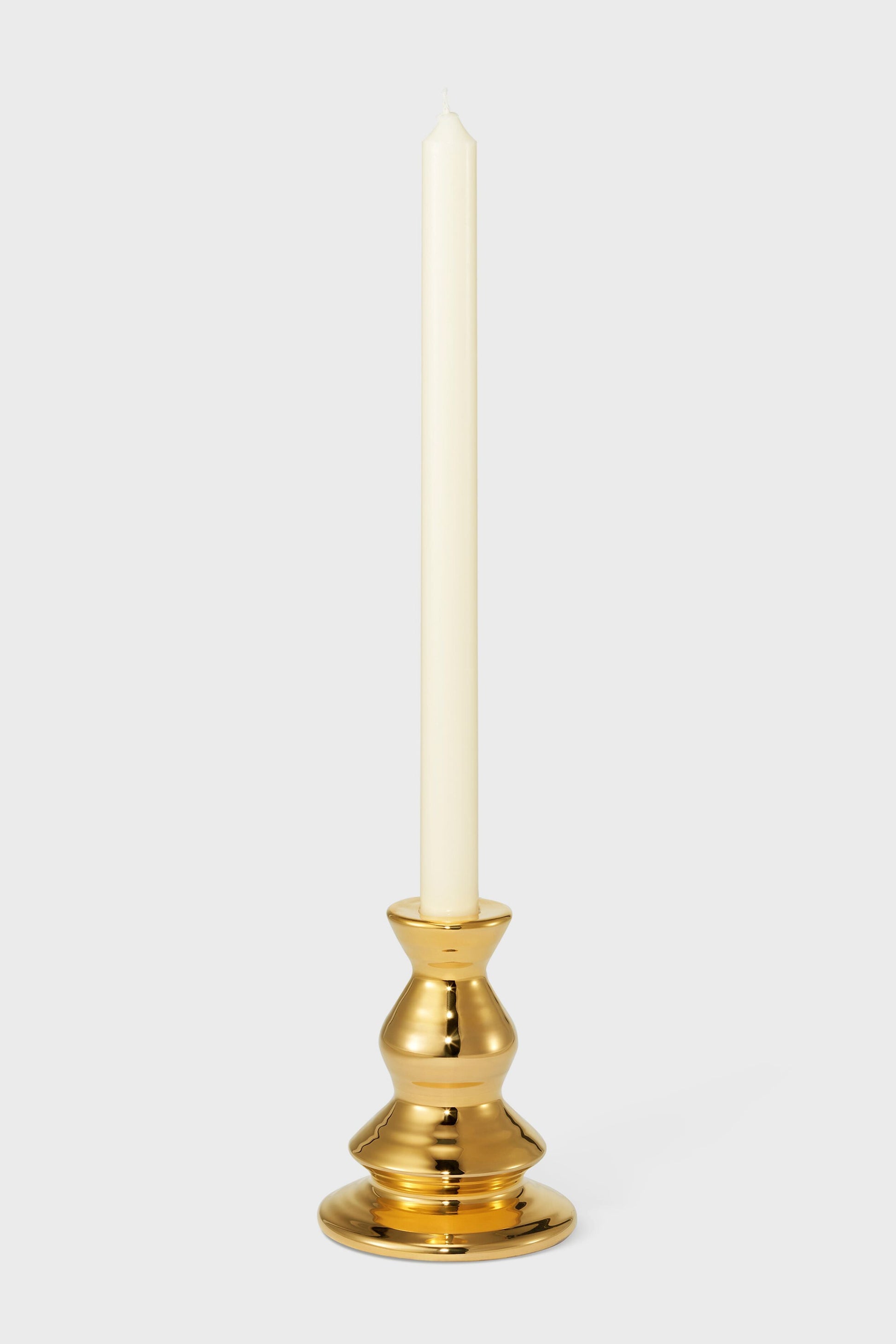 This medium-sized handcrafted ceramic candleholder is enhanced with a ribbing effect created by the potter's own hand. It has a pure, artisanal look and is versatile enough for daily use or to add some rustic character to a table setting as a single or a pair.