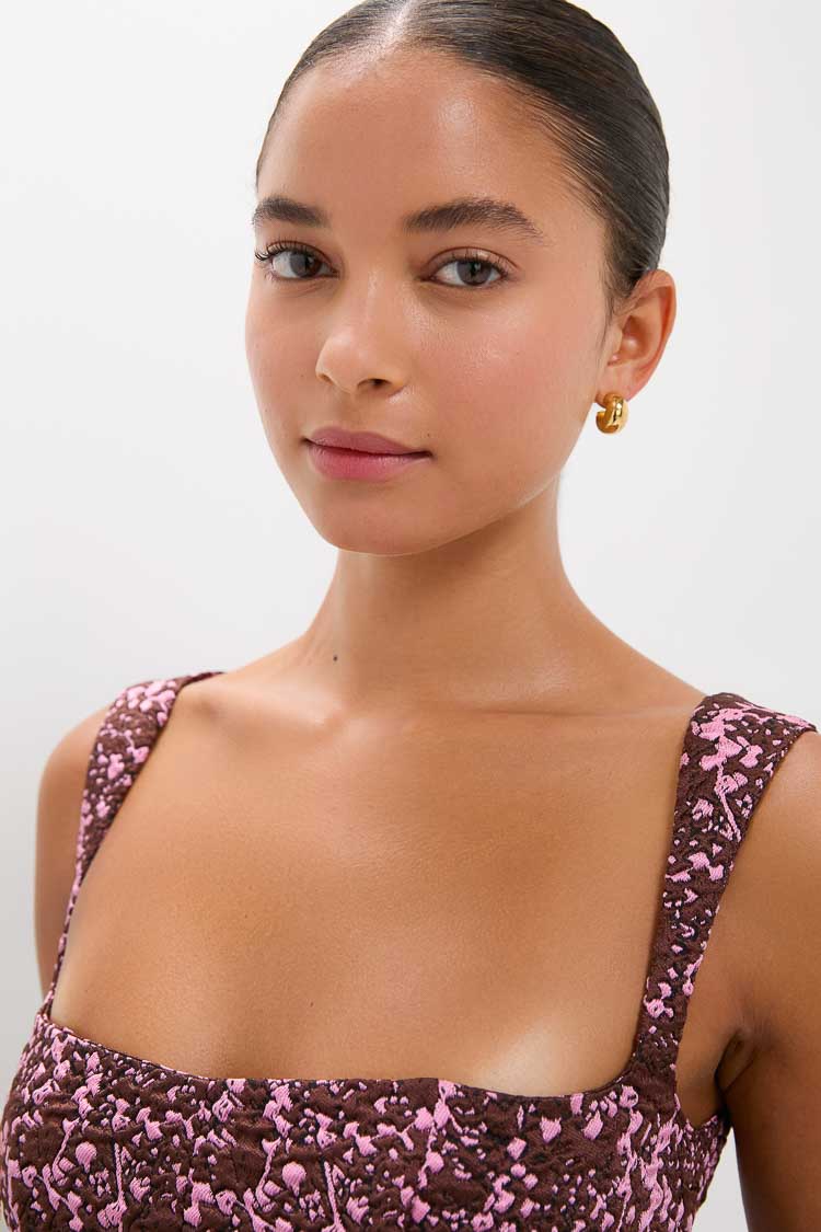 The Sylvie Jacquard Dress in Mulberry Jacquard is a textured statement piece with a flattering square neckline and cinched waist. Crafted from rich jacquard fabric with tonal depth, this A-line silhouette offers refined structure with a feminine finish, perfect for dressed-up occasions or modern day-to-night styling.