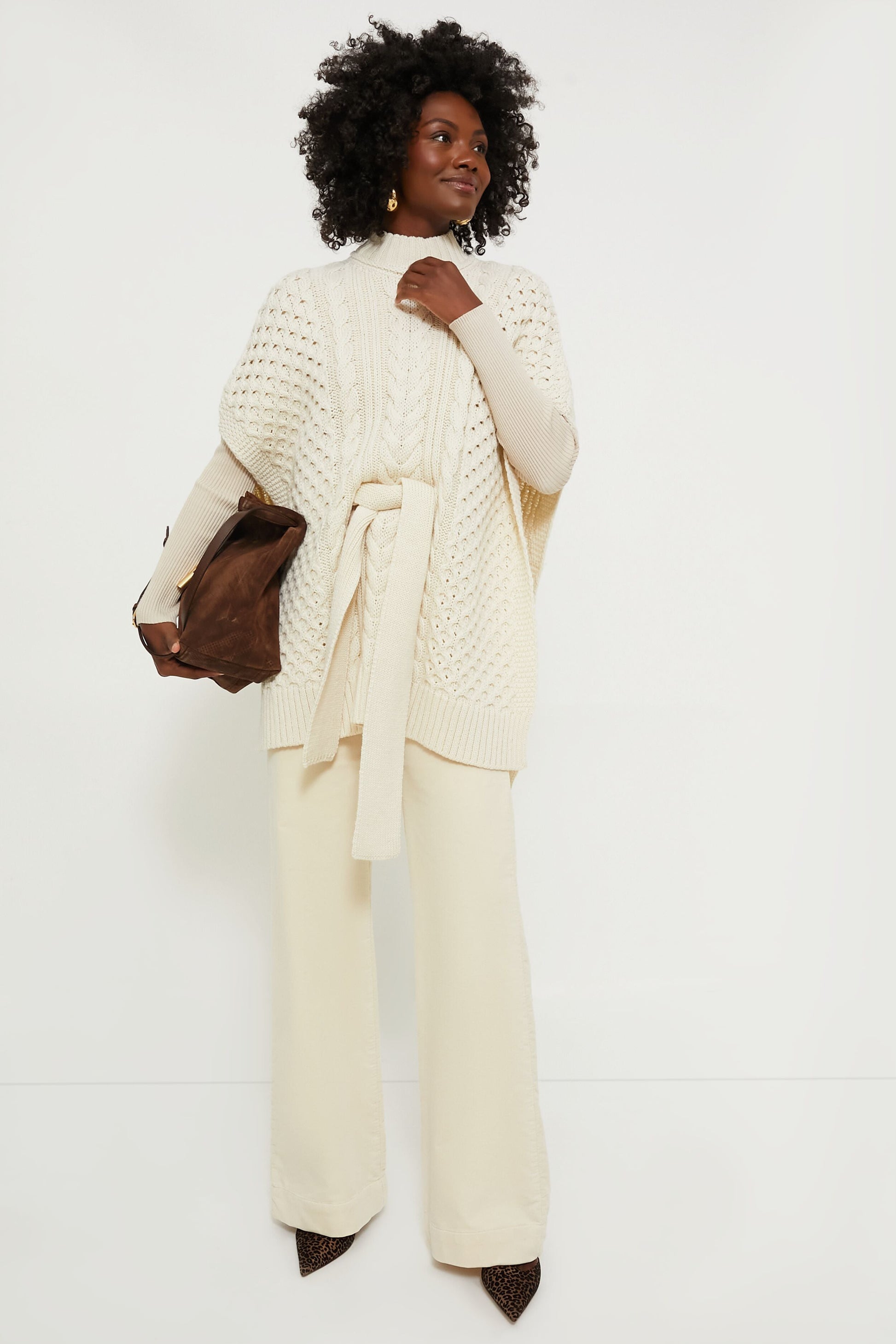Prepare for all things cozy in the Natural Crocus Horseshoe Cable Cape! Featuring a mock neckline, dropped shoulders, and an adjustable waist tie to cinch it for a flattering shape, this new neutral ensures warmth and breathability. Complete with ribbed detailing and cable stitching for gorgeous texture, this knit drapes elegantly down the body. Style it over long sleeve, paired with denim and boots to relax by the fireplace or journey into the chilly outside for a coffee run.