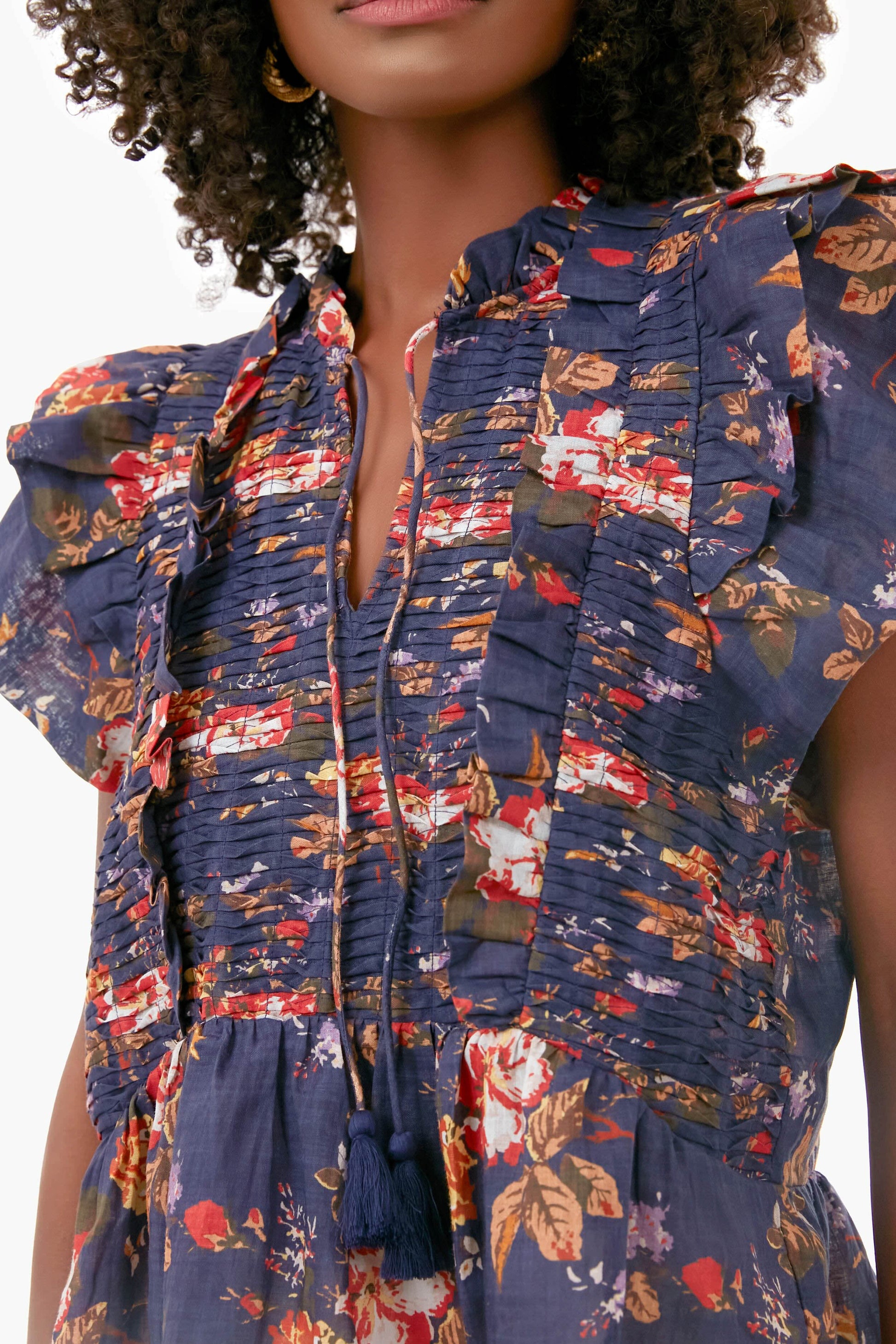 The Navy Esme Flutter Sleeve Top is made from floral-printed cotton ramie with flutter sleeves, pintucked detailing, and neck ties. This breezy blouse easily transitions from desk to drinks with a quick change of accessories!