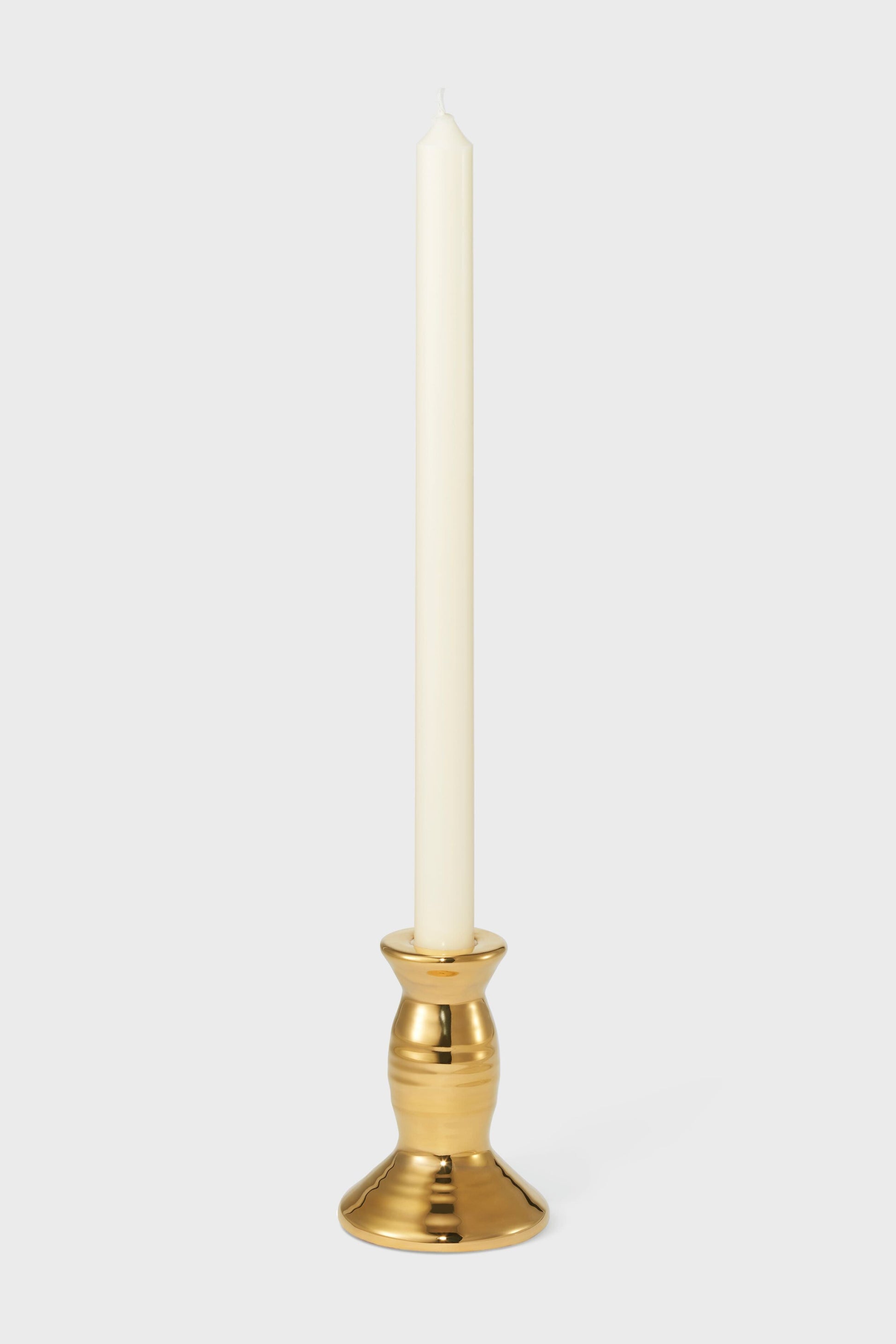 This small handcrafted ceramic candleholder is enhanced with a ribbing effect created by the potter's own hand. It has a pure, artisanal look and is versatile enough for daily use or to add some rustic character to a table setting as a single or a pair.