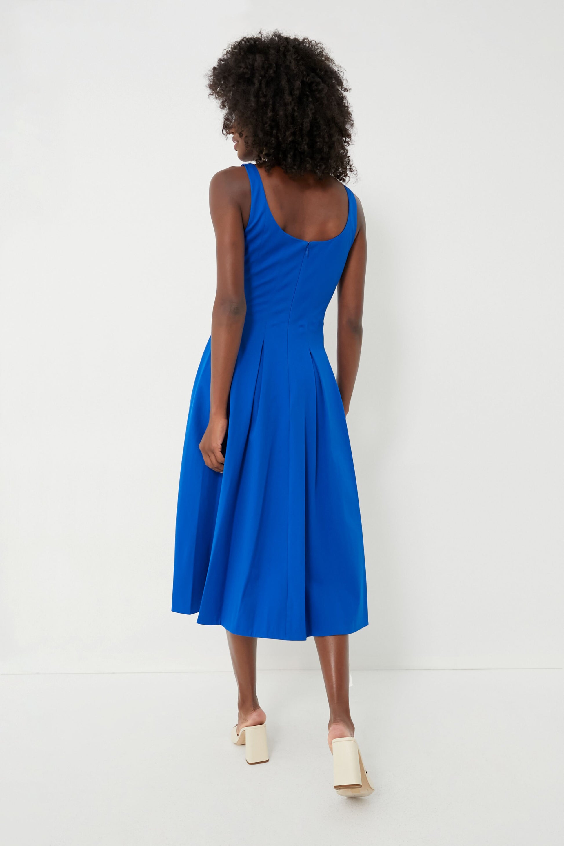 The Stained Glass Blue Dress is a beautiful sight! Featuring a scoop neckline, a pleated skirt, and functional side seam pockets, this marvelous midi is effortlessly flattering. Made from a lightweight stretch twill fabric, this classic silhouette is an elegant style that you will come back to time and time again. We recommend styling with heels, statement earrings, and a clutch for outdoor celebrations, dinners al fresco, and when you need a pop of color in your life.
