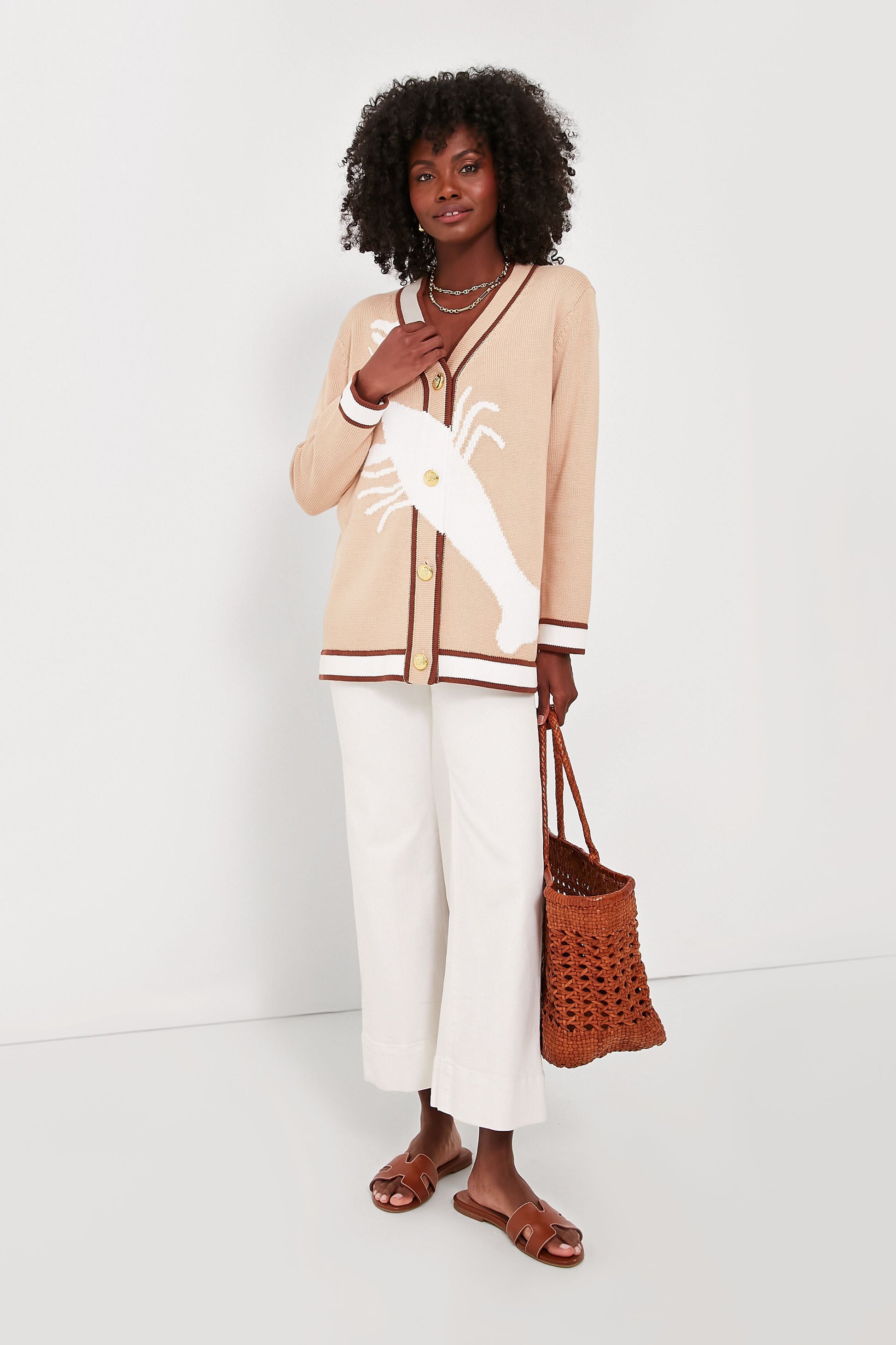 Tan Lobster Cotton Lauren Cardigan