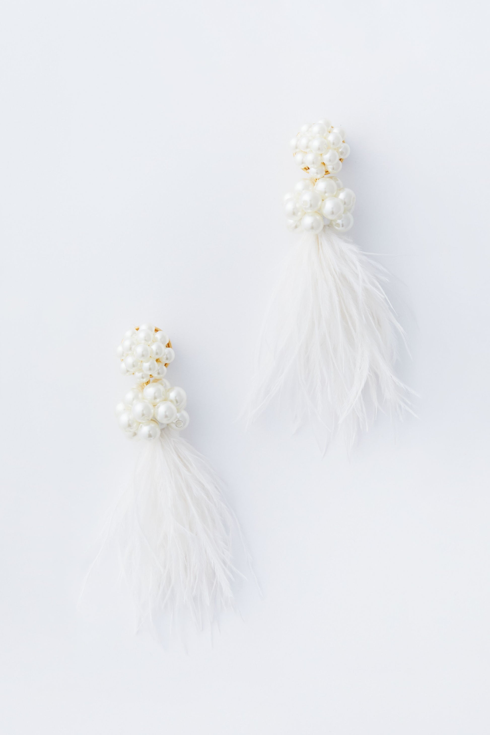 Add a touch of whimsical charm to your ensemble with the White Feather Nicole Earrings. Featuring a feather tassel dangling gracefully under a cluster stud, these are perfect for making a statement any time, anywhere. Pair them with a fabulous maxi dress, a sleek mini skirt, or a matching set with a bold print for a party-ready look that just won't quit.